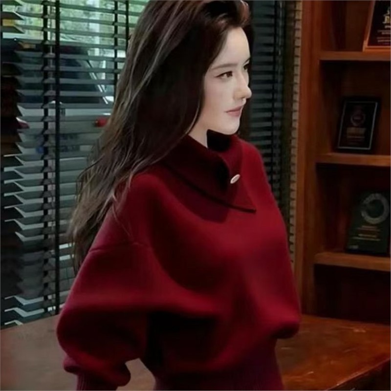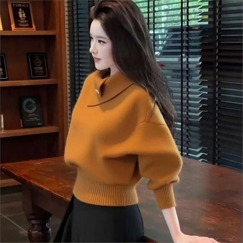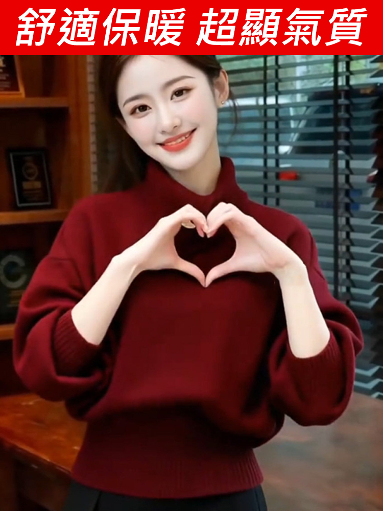 時尚慵懶半高領不規則毛衣