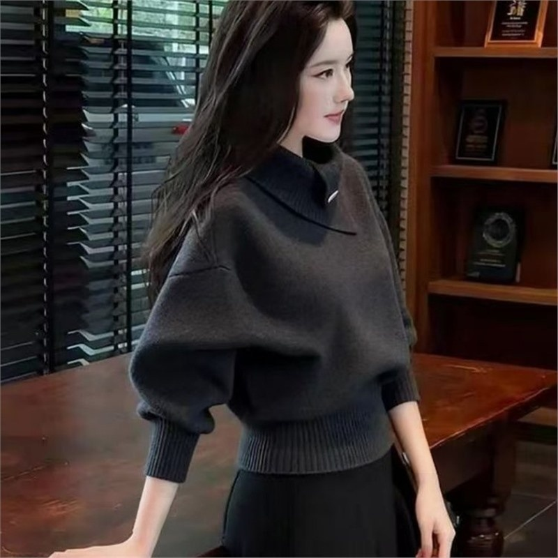 時尚慵懶半高領不規則毛衣